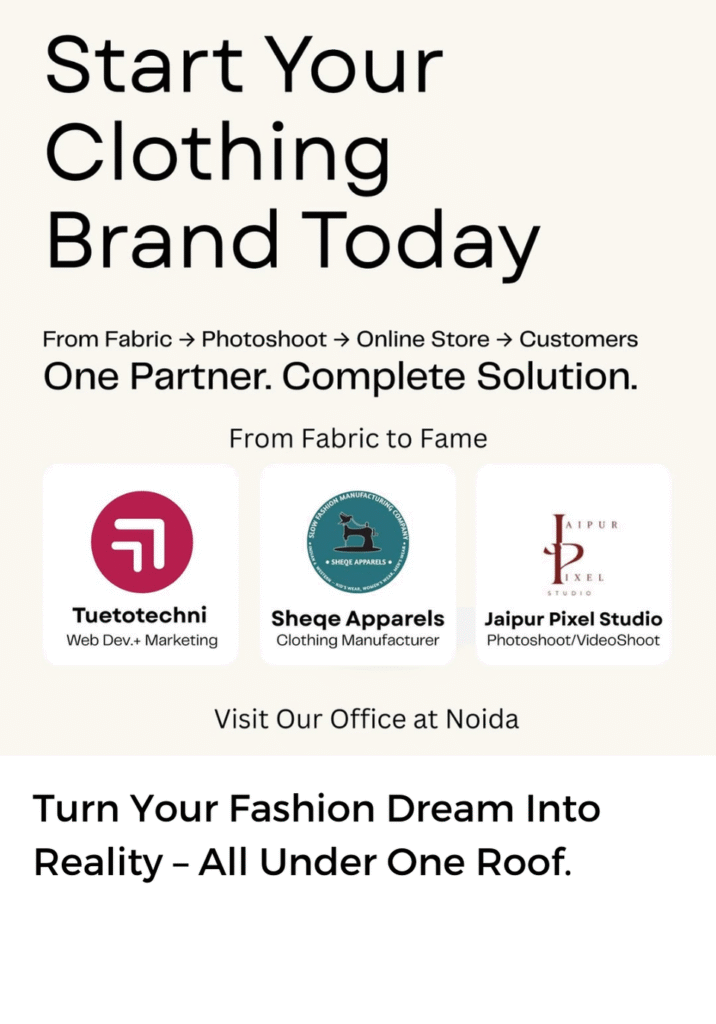 Based in Noida, India, Sheqe Apparels has been crafting sustainable, small-batch garments since 2004. With over a decade of ethical manufacturing expertise, we help fashion startups and global brands bring their ideas to life—seamlessly and responsibly.